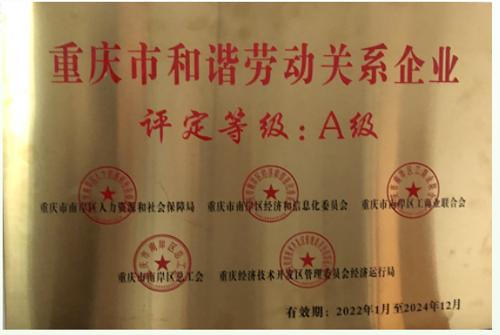 創(chuàng)迪科技榮獲2022年度“重慶市和諧勞動(dòng)關(guān)系企業(yè)A級(jí)”稱號(hào)